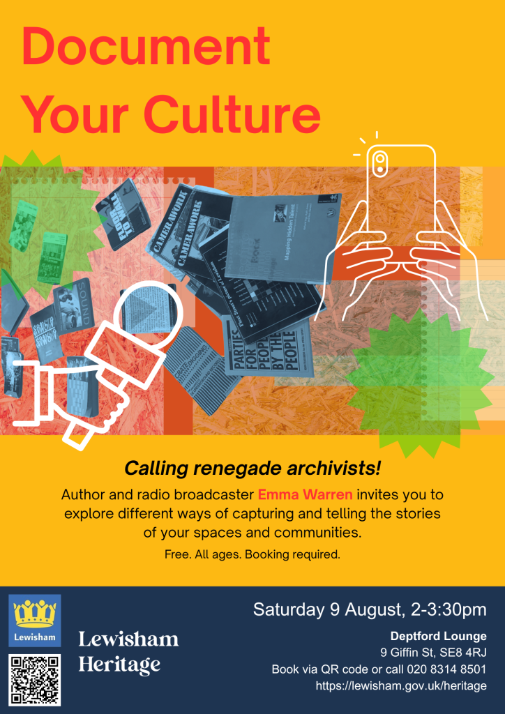 British-Irish dual national and Lewisham resident Emma Warren has been documenting grassroots culture for decades. She is the author of Dance Your Way Home (Faber, 2023), which forms the basis of the Southbank Centre’s summer season 2025. Other publications include Make Some Space and Steam Down: Or How Things Begin, which told the story of the Deptford jazz jam. Her pamphlet, Document Your Culture, has become a cult read for renegade archivists worldwide. Hosting a radio show on WWFM for six years, she also has a background in youth work.