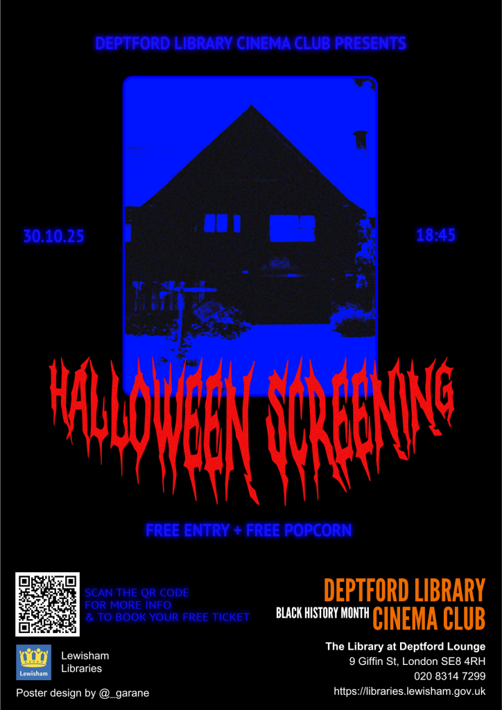It’s getting darker, so our memorable Films in the Foyer screenings are back! Join us in the spooky darkness of Deptford Library front foyer for another cult classic film event. This Halloween, we’ll be projecting another comedy-horror for you to enjoy on the big screen – a rare chance to see a lesser-known film from a legendary horror director not currently available on streaming. Want to know which one? Visit the library or sign up to our newsletter to get the full film schedule directly to your inbox: https://forms.office.com/e/j2VMf5ynjw