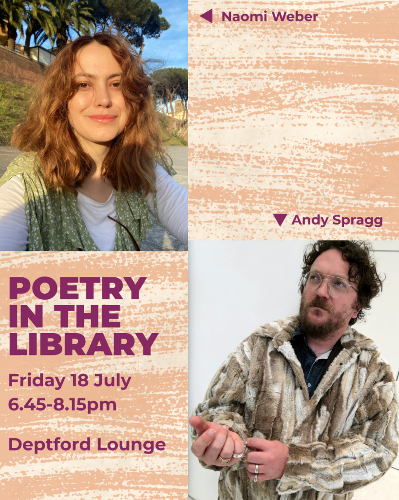 Join us for poetry readings and audience Q&A with Andy Spragg and Naomi Weber.